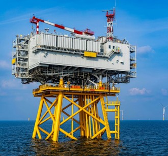 An offshore substation is a critical platform that collects electricity from multiple wind turbines, steps up the voltage, and transmits it to the onshore grid via long export cables.